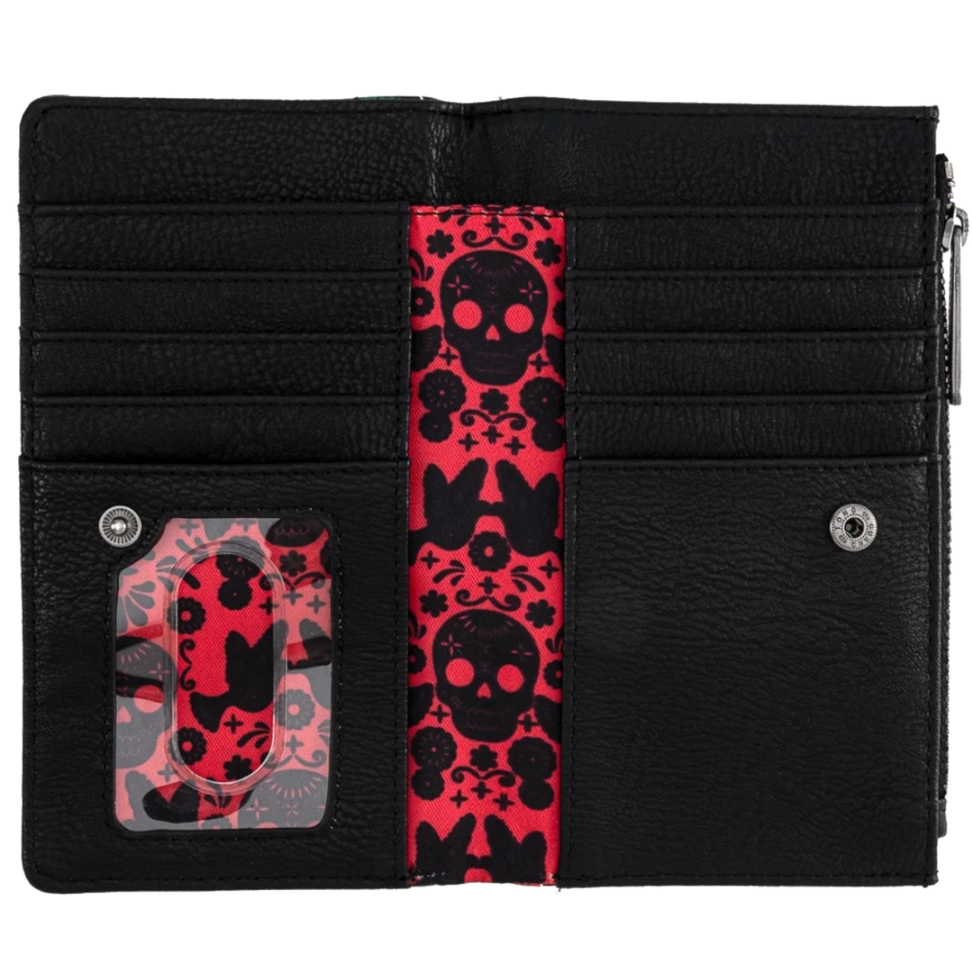 Whether it is Dia De Los Muertos or Halloween, this wallet is the perfect companion for a spooky night out. This faux leather bag is beautiful enough to sit on your very own Ofrenda.Â