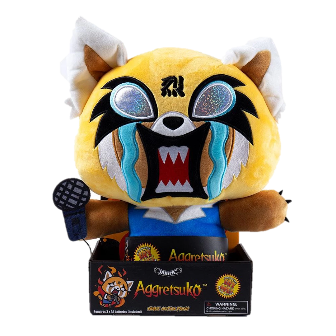 Calling all Aggretsuko fans! It’s time to RAGE… karaoke style with this new Aggretsuko Rage HugMe Shake Action Vibrating Plush by Kidrobot x Sanrio! Everyone’s favorite introverted red panda who’s just trying to get through the work day is available from Kidrobot in vibrating plush! Frustrated with her thankless office job, Retsuko copes with her daily struggles by belting out death metal karaoke after work when all she might need is a really good hug! When you hug this plushie or clap for her, she rages with vibrating action. Standing at 16-inches tall, your favorite red panda Aggretsuko is ready to snuggle up with you at the end of a hard day and relax!