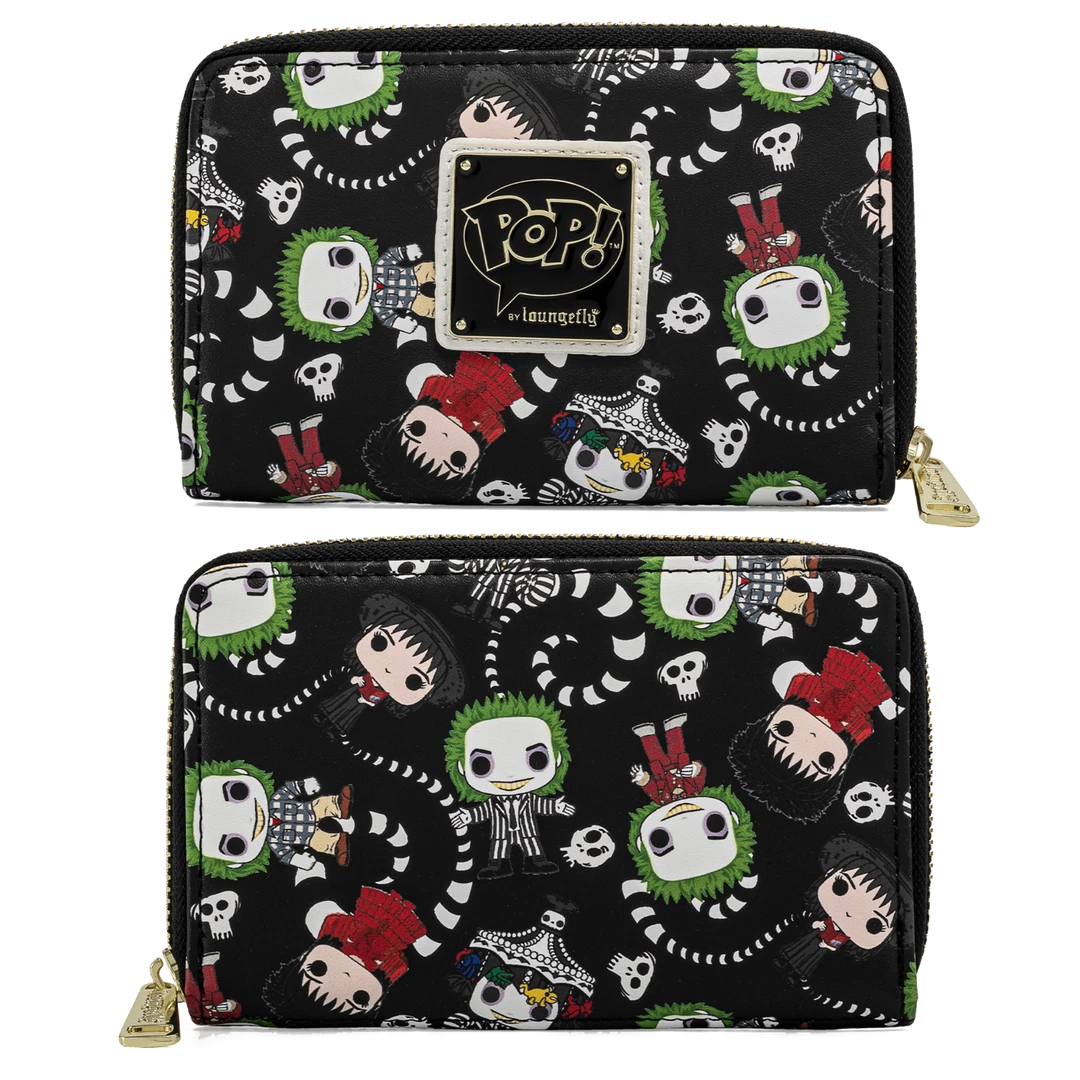 Don’t be anxious. The new Funko Pop! by Loungefly Beetlejuice Zip Around Wallet is here in time for scaring season. This pattern’s all over print features Funko Pop! versions of Beetlejuice in various outfits among motifs of sandworms and skulls. This wallet is “loud” and attention catching design making it an appealing accessory for pairing with Halloween themed outfits.