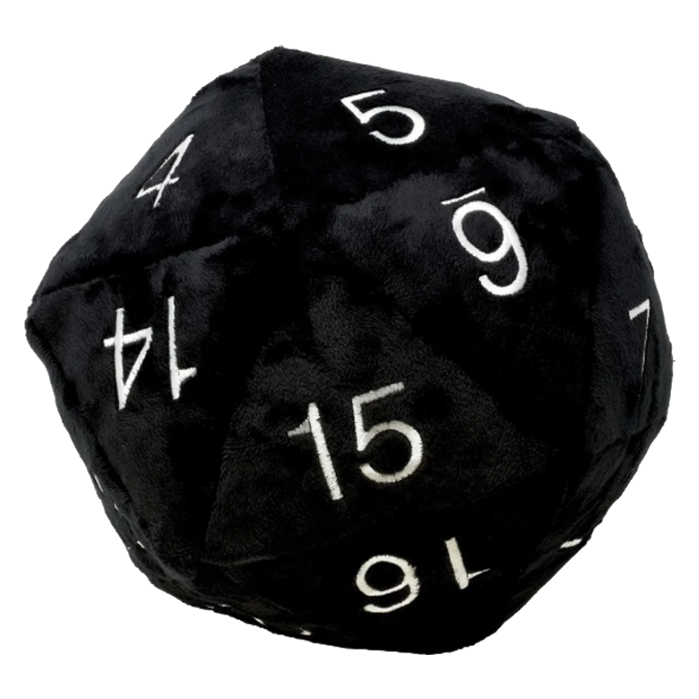 mbo D20 Novelty Dice Plush in black with silver Numbering