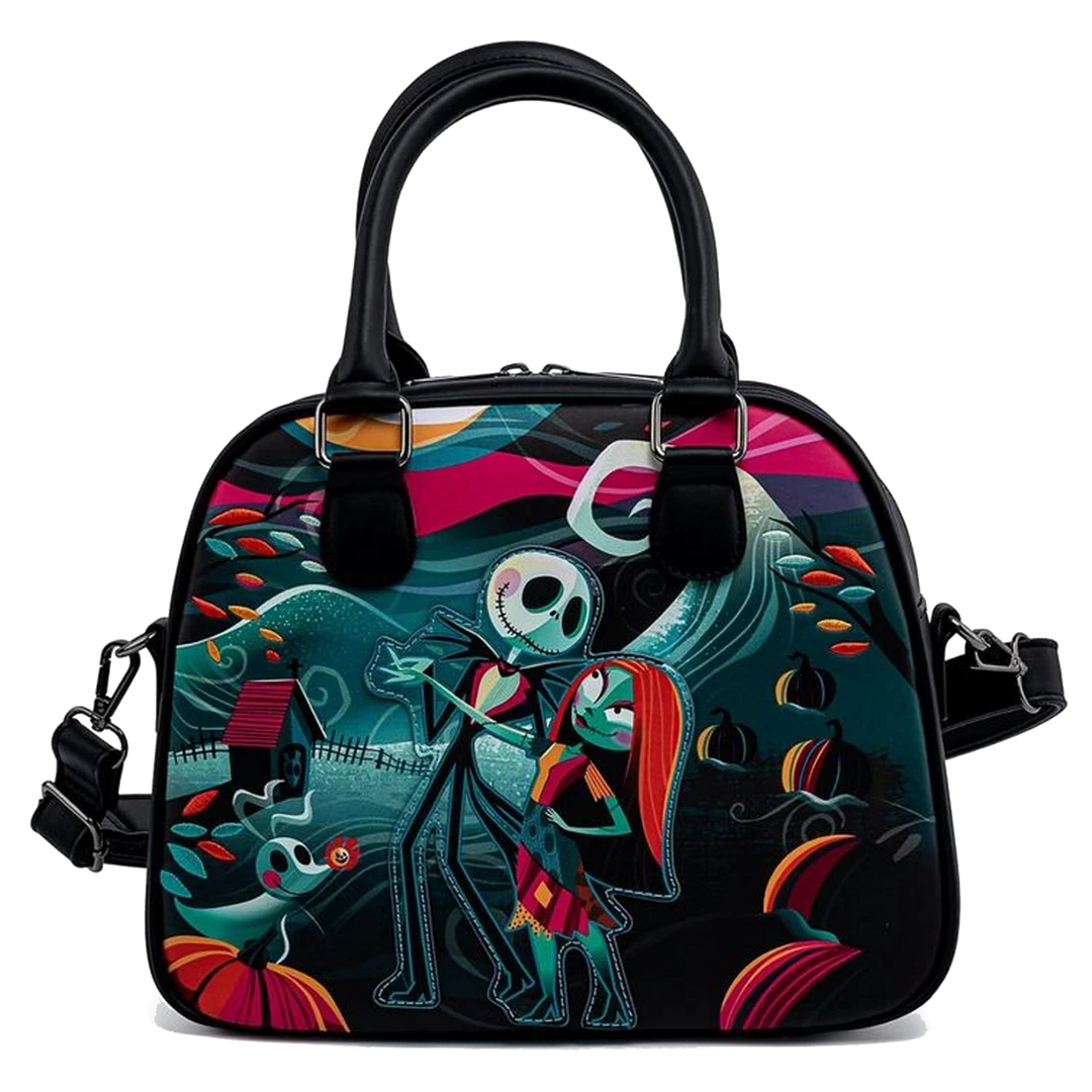 The new Disney The Nightmare Before Christmas Simply Meant to Be Crossbody Bag will have you, and your Loungefly collection, singing on the hilltop! The pattern features Jack Skellington and Sally in vibrant colors as they dance their way up the hill in the moonlight. Zero even makes an appearance among the pumpkins and autumn leaves as bats fly in the breeze. This bag is great for adding an eerie air to a Halloween-themed outfit and perfect for everyday use.