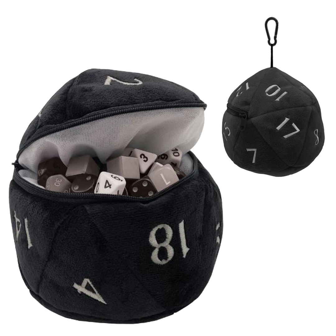 Need +5 to dice hoarding? We’ve got you covered with a new dice bag based on our ever-popular jumbo D20 plush! Zippered center pocket holds up to 50 dice, while carabiner-style hook keeps your dice securely at your side. This Plush D20 Dice Bag measures approximately 6.5 inches in diameter, and is the perfect accessory for any TTRPG adventurer or dice enthusiast!